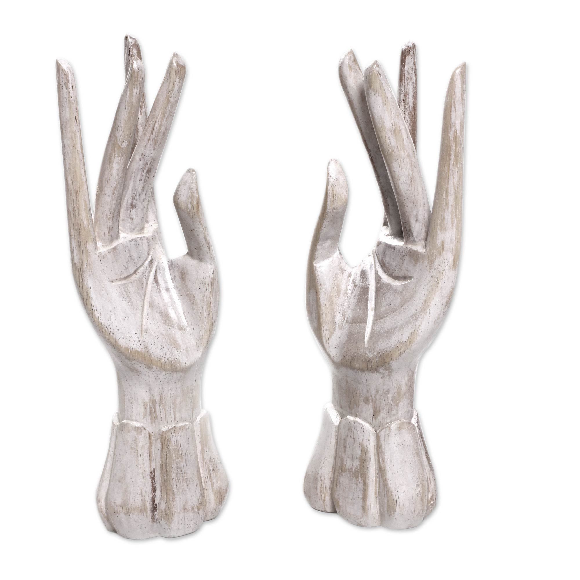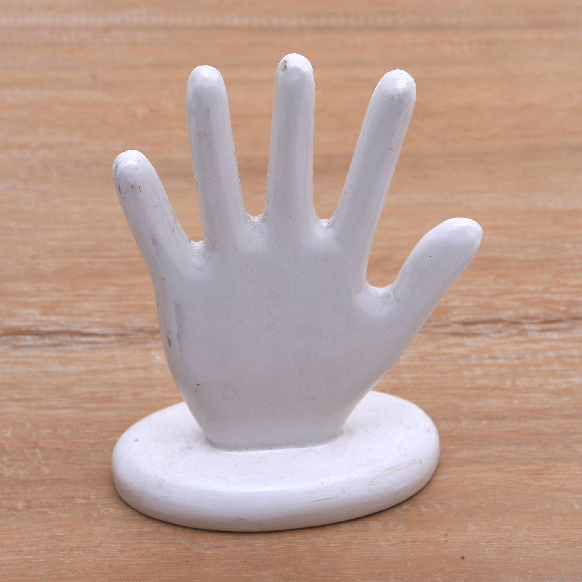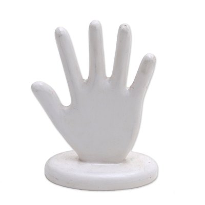 Hand Shaped White Wood Ring Holder From Bali White Hand Novica