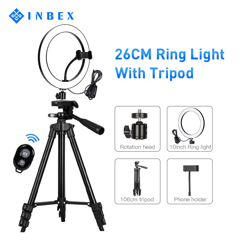 10 26cm Selfie Ring Light With 1 1m Tripod Stand And Phone Holder Dimmable Led Circle Lights Lighting For Photography Vlogging Makeup Video Newegg Com