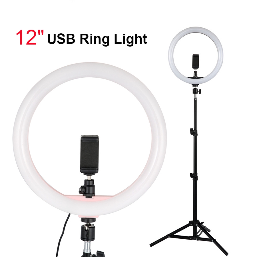 Usb Ring Light With 1 1m Tripod Stand Phone Holder Phone 12 Dimmable Led Photography Lighting Shopee Indonesia