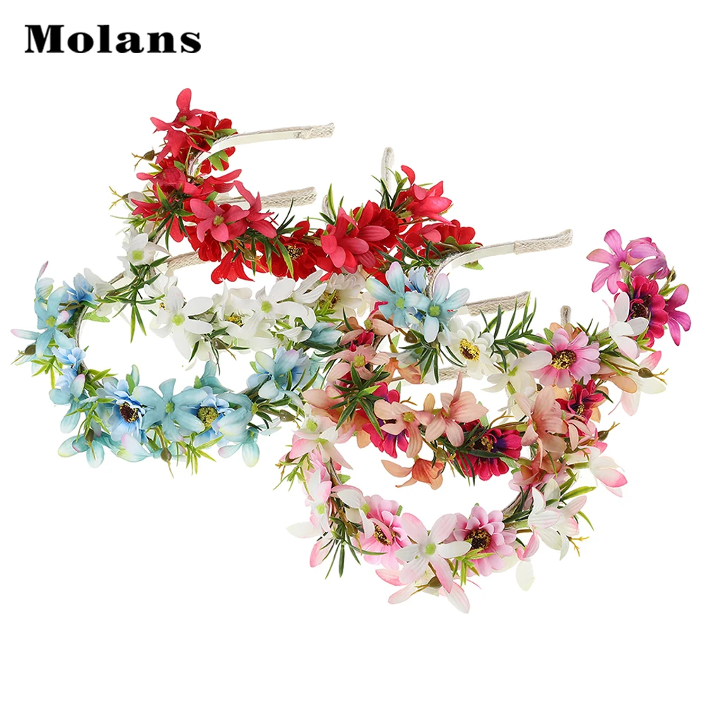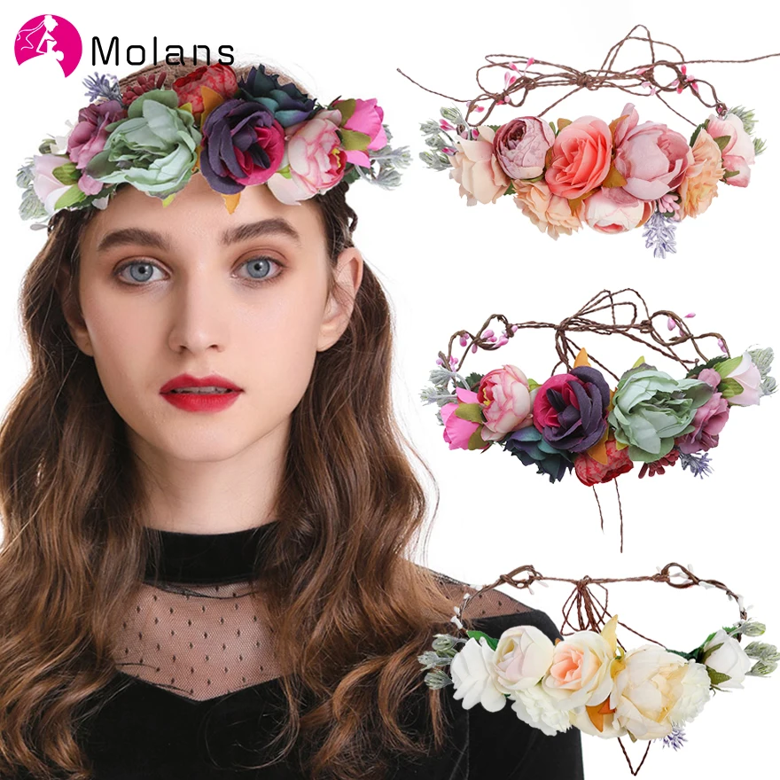 Molans Women Flower Hairband Wedding Hair Accessories Braid Flower Crown Outdoor Flower Headband 2020 New Floral Wreath For Girl Aliexpress