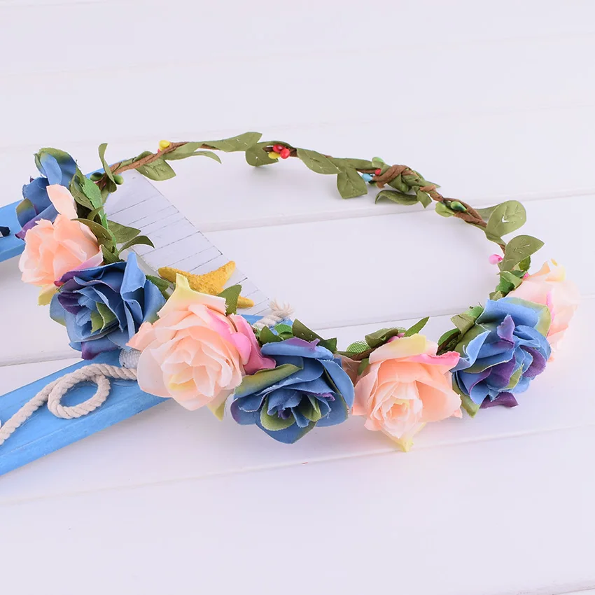 China Women Girl Leather Leaves Braided Floral Headband Crown Wedding Beach Hair Accessories China Wedding Floral Headband And Beach Flower Crown Price
