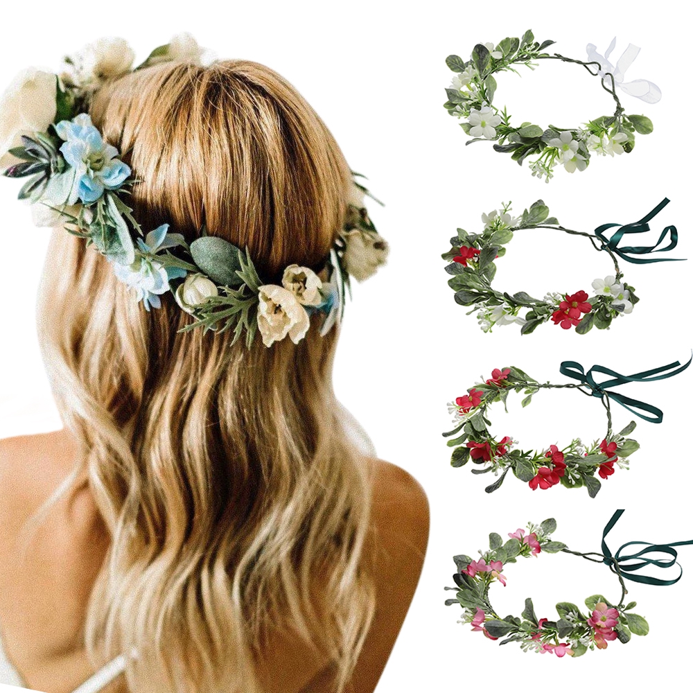 Flower Crown Spring Womens Floral Ribbon Bow Flower Wreath For Wedding Braids Braidsmaid Photoshoot Shopee Indonesia