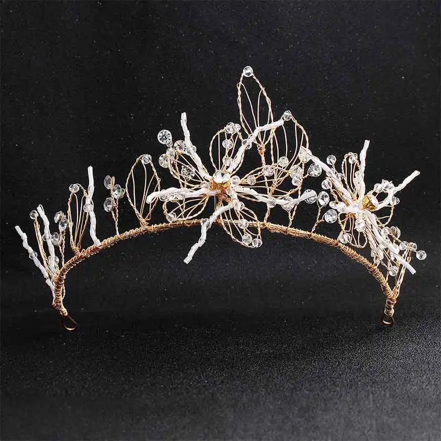 Molans Simple Handmade Hollow Flower Crown For Bridal Wedding Accessories Golden Alloy Twisted Diamonds Hairbands Hair Ornament Aliexpress