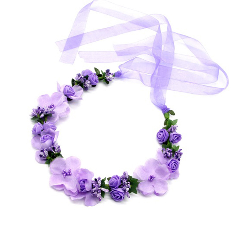 Purple Flower Crown Hair Garland Coachella Floral Crown Wedding Flower Crown
