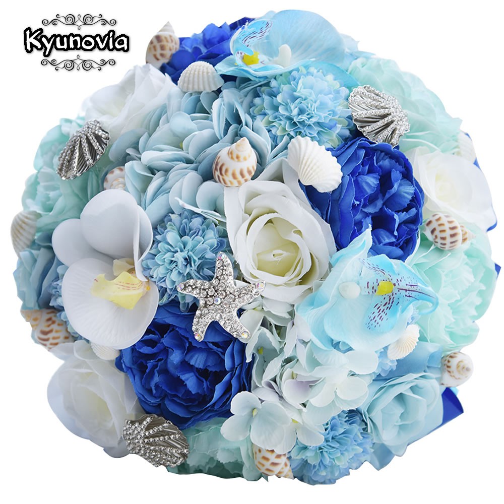 Kyunovia Seashell Wedding Bouquet Silk Wedding Flowers Hydrangea Garden Bouquets Blue Beach Shopee Indonesia