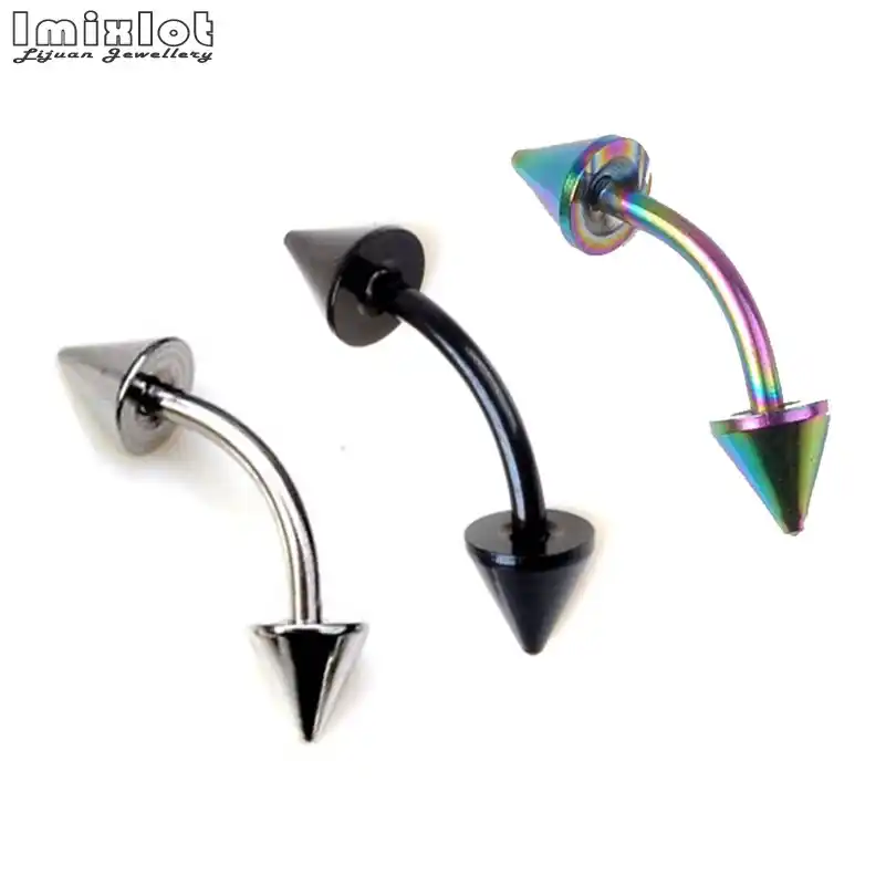 5pcs Lot Titanium Anodized Colorful Curved Barbell Double Spike End Eyebrow Piercing Ring Banana Barbell Fashion Jewelry 18g Aliexpress