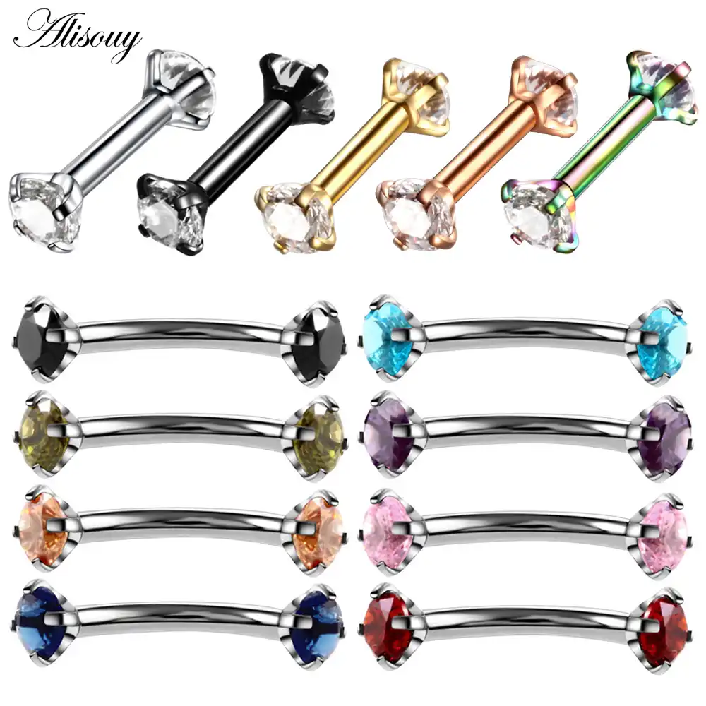 Alisouy 1pc Surgical Steel Eyebrow Jewelry Double Gem Zircon Curved Ring Eyebrow Piercing Barbell Piercings Body Jewelry Bijoux Aliexpress