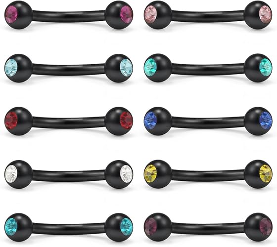 Amazon Com Ruifan Lot Of 10 Mix Color Double Jeweled Diamond Eyebrow Piercing Jewelry Curved Barbell With Ball Kit Eyebrow Tragus Lip Ring 16g 16 Gauge 8mm Black Jewelry