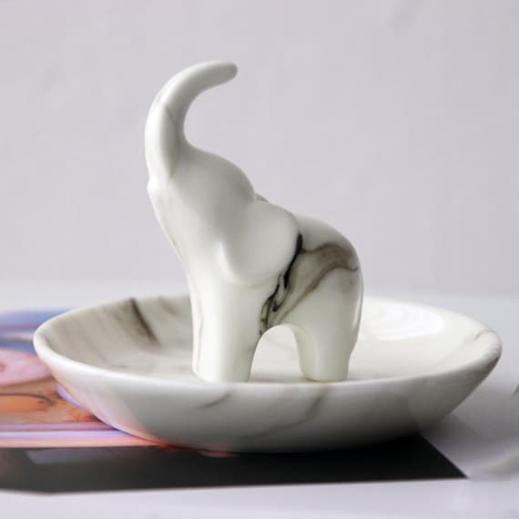 Elephant Ring Dish Jewelry Holder White Marbled Ceramic Ring Etsy