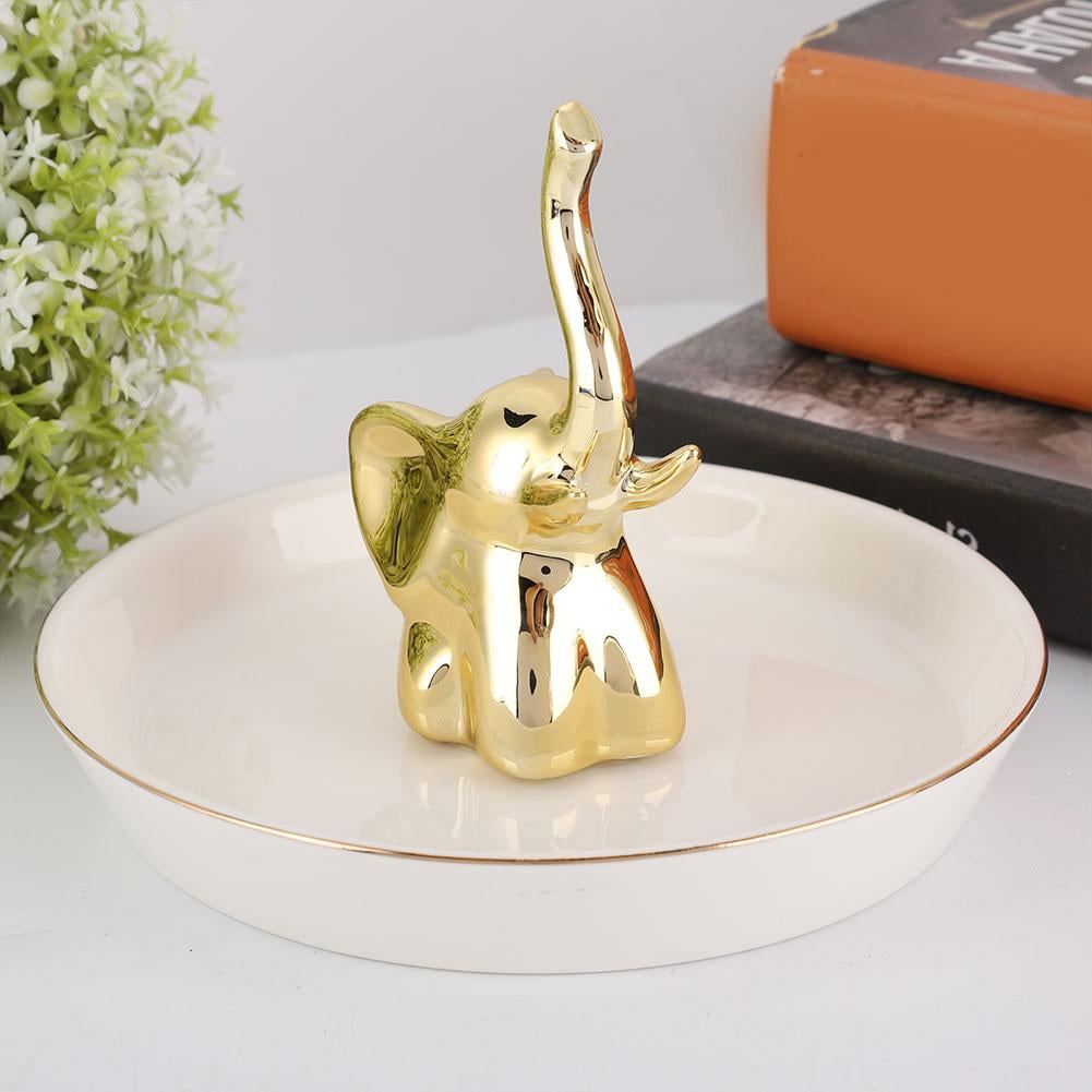Golden Elephant Ceramic Ring Jewelry Key Ring Holder Dish Home Gift Ornament Shopee Indonesia