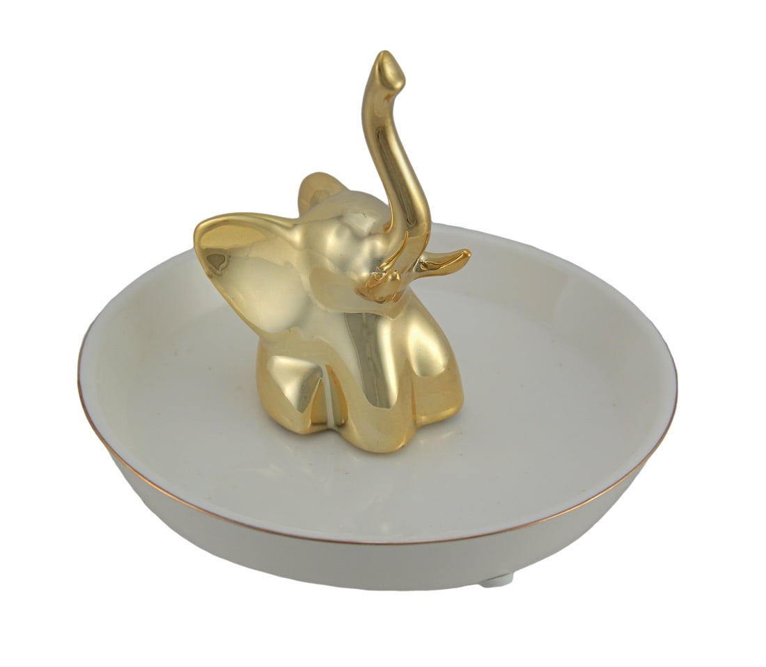 Shopandbox Buy Elephant Ring Holder Dish White Ceramic Ring Dish Gold Elephant From Us
