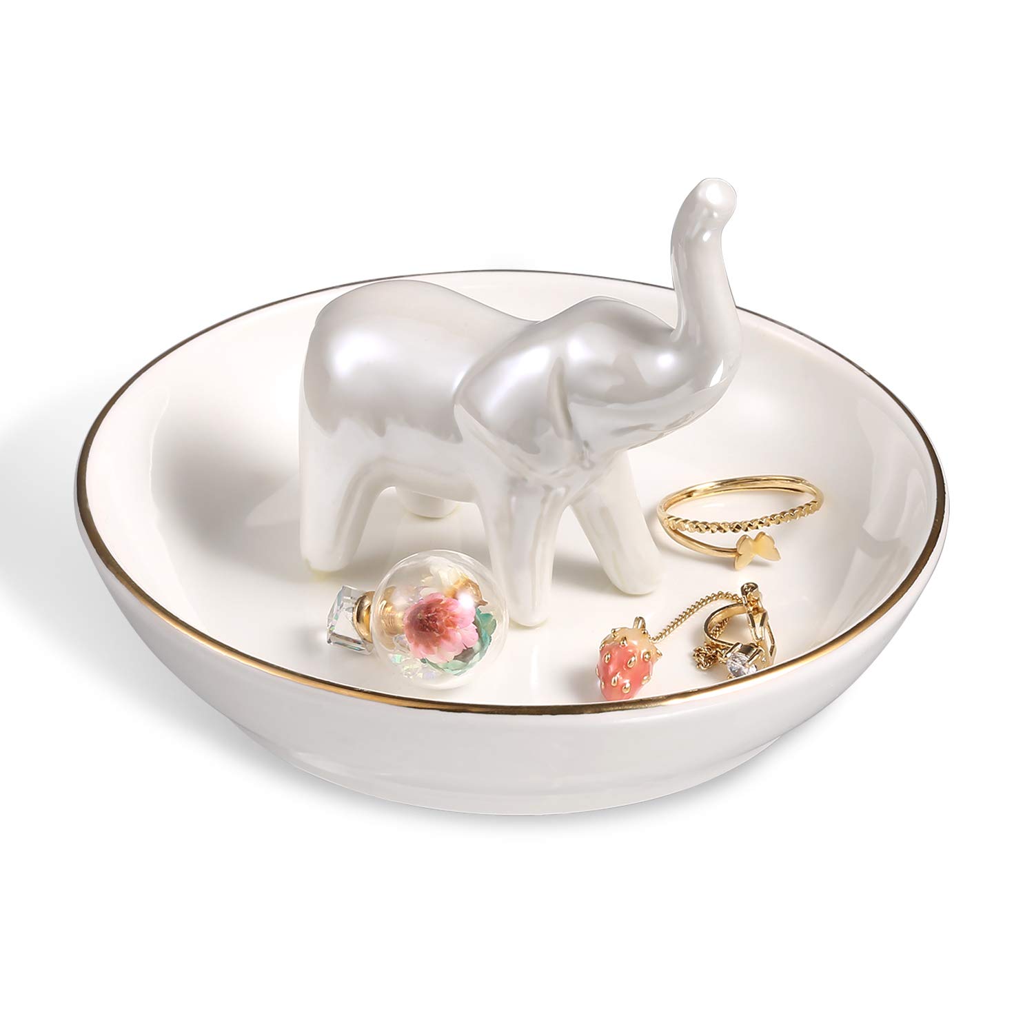 Amazon Com Homesmile Elephant Ring Dish Holder For Jewelry Engagement Wedding Trinket Trays White Home Kitchen