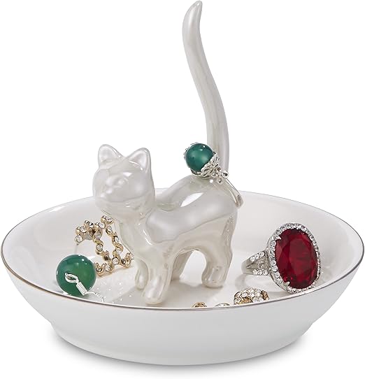 Ring Holder With Cream Ceramic Dish Cat Or Elephant Charlie Chums