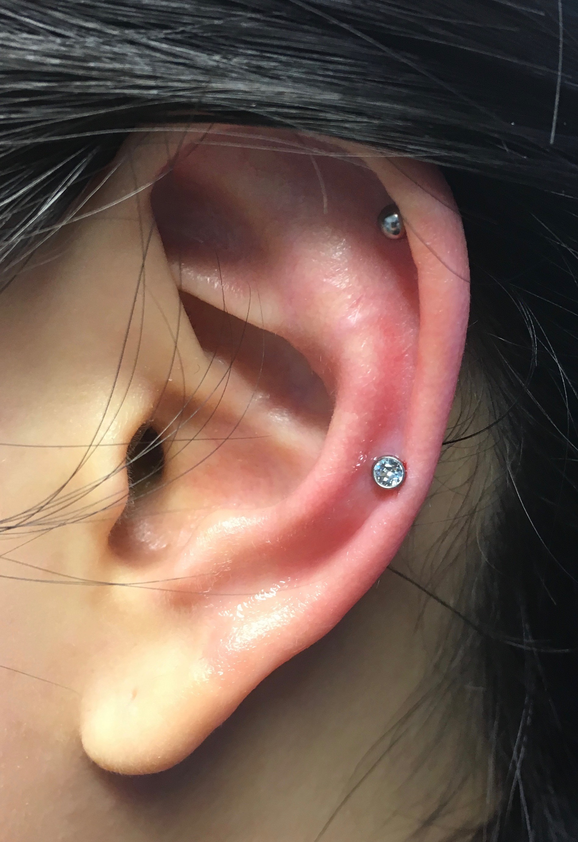 I Am So Happy Fully Healed Double Low Helix Fully Healed High Helix Flat Finally Apparently My Ears Only Like Titanium Or Sterling Silver Piercing