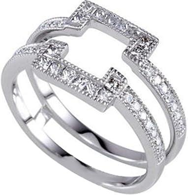 Amazon Com 0 90 Carat Ctw 14k Gold Princess Cut White Diamond Ladies Wedding Band Enhancer Guard Double Ring Jewelry