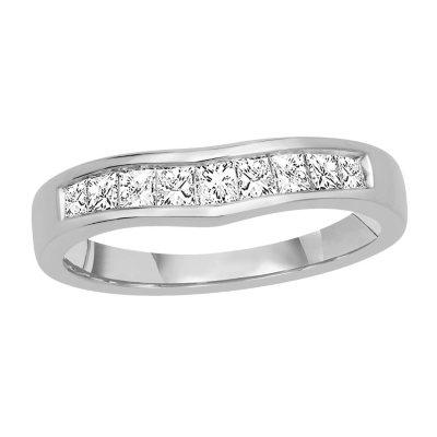 1 2ct Princess Cut Diamond Curved Wedding Ring Enhancer 14k White Gold