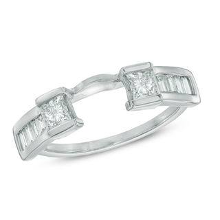 5 8 Ct T W Princess Cut And Baguette Diamond Block Solitaire Enhancer In 14k White Gold Wedding Bands Wedding Zales Outlet