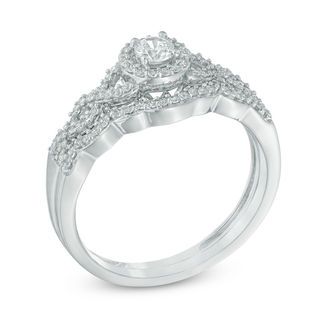 3 8 Ct T W Diamond Frame Loose Braid Bridal Set In 10k White Gold Engagement Rings Wedding Zales Outlet