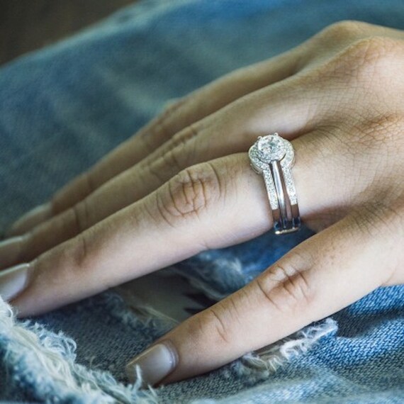 Halo Wedding Ring Guard Sterling Silver With Cubic Zirconia Etsy