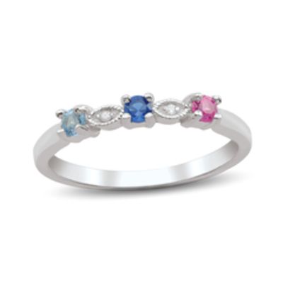 10k Yellow Gold Heart Ring 3 Birthstone Family Ring