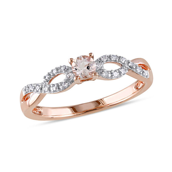 3 5mm Morganite And 1 20 Ct T W Diamond Twine Promise Ring In Rose Rhodium Sterling Silver Gemstone Rings Rings Zales Outlet