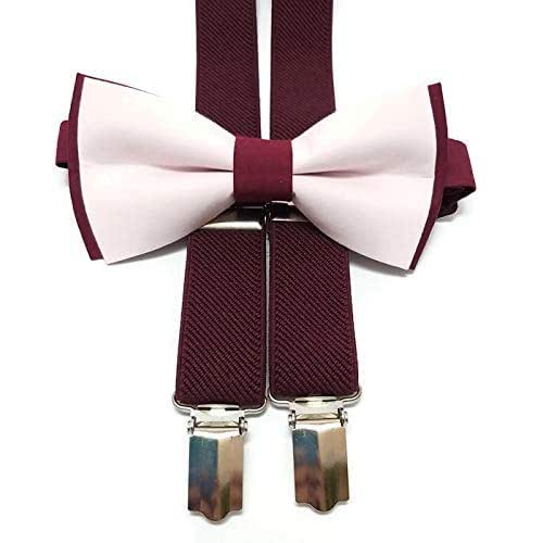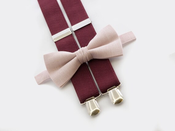 Amazon Com Burgundy Blush Cotton Bow Tie And Burgundy Wine Suspenders For Groomsmen For Groom Outfit For Ring Bearers Men Handmade