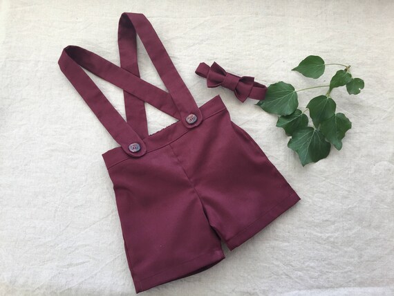 Ring Bearer Outfit Maroon Burgundy Baby Boy Suspender Shorts Etsy
