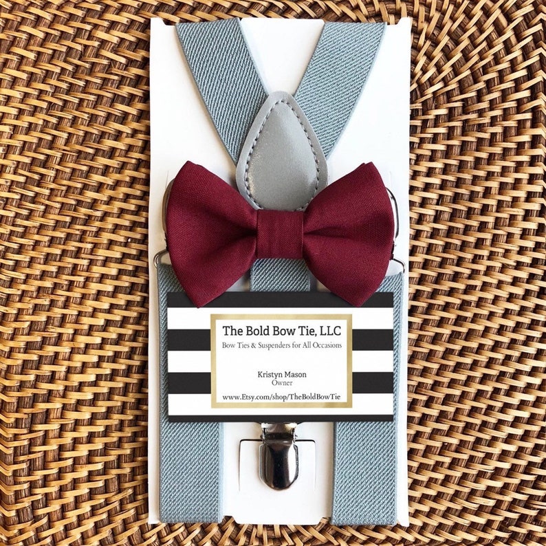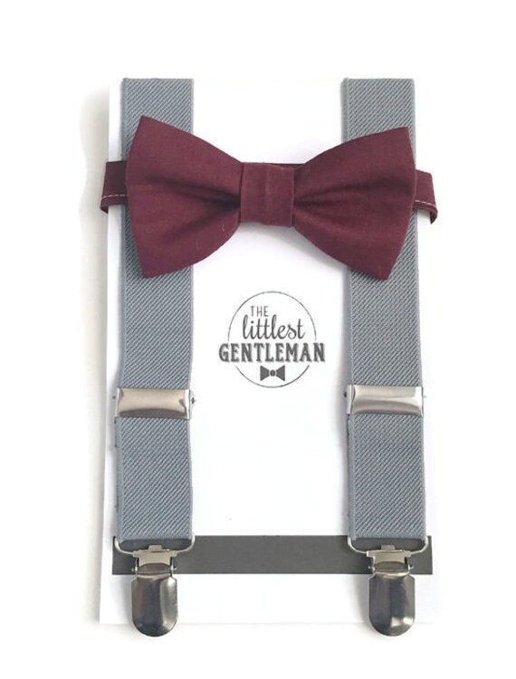 Burgundy Bow Tie Gray Suspenders Mens Bow Ties Ring Bearer Etsy