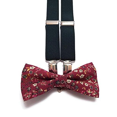 Amazon Com Emerald Green Elastic Y Back Suspenders Burgundy Liberty Of Floral Wedding Bow Tie Set For Ring Bearer Groom Groomswoman Father Son Matching Outfits Rigbearers Usher Handmade
