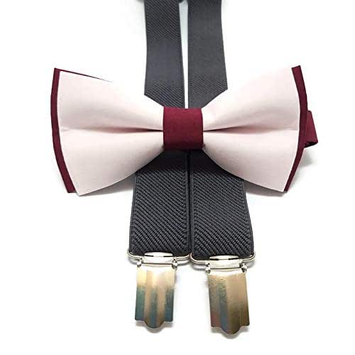 Amazon Com Burgundy Blush Cotton Bow Tie And Charcoal Gray Suspenders For Groomsmen For Groom Outfit For Ring Bearers Men Handmade