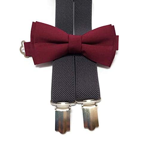 Amazon Com Charcoal Suspenders And Burgundy Wine Plain Bow Tie For Groomsmen For Groom Outfit For Ring Bearers Men Women Handmade
