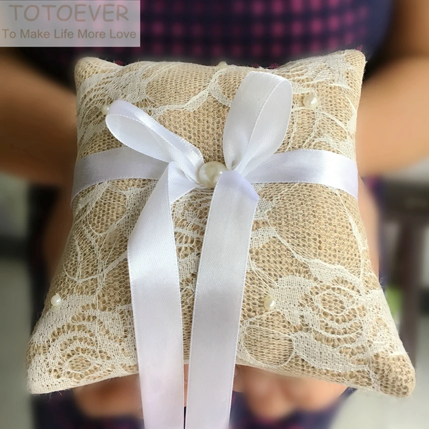 Vintage Wedding Ring Pillow Pearl Jute Natural Burlap Lace Ring Bearer Pillow Cushion Holder For Wedding Accessories 14cmx14cm Party Diy Decorations Aliexpress