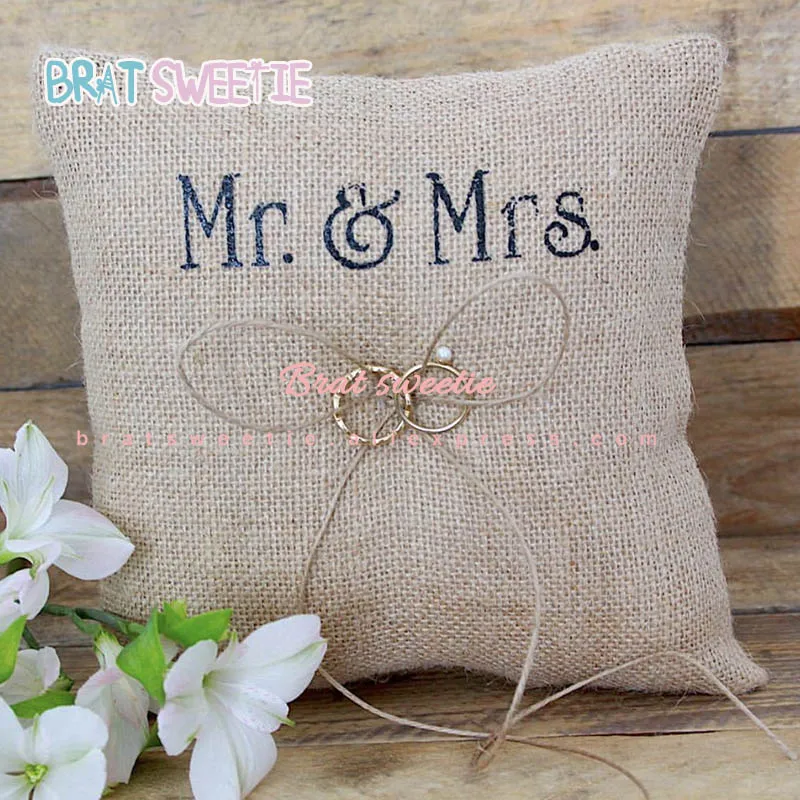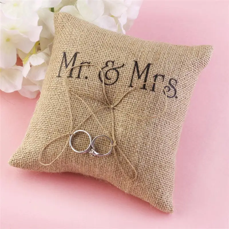 15cm Vintage Mr Mrs Burlap Lace Bow Ring Pillow Rustic Shower Wedding Ring Bearer Pillow Cushion Party Decorations Supplies Party Diy Decorations Aliexpress