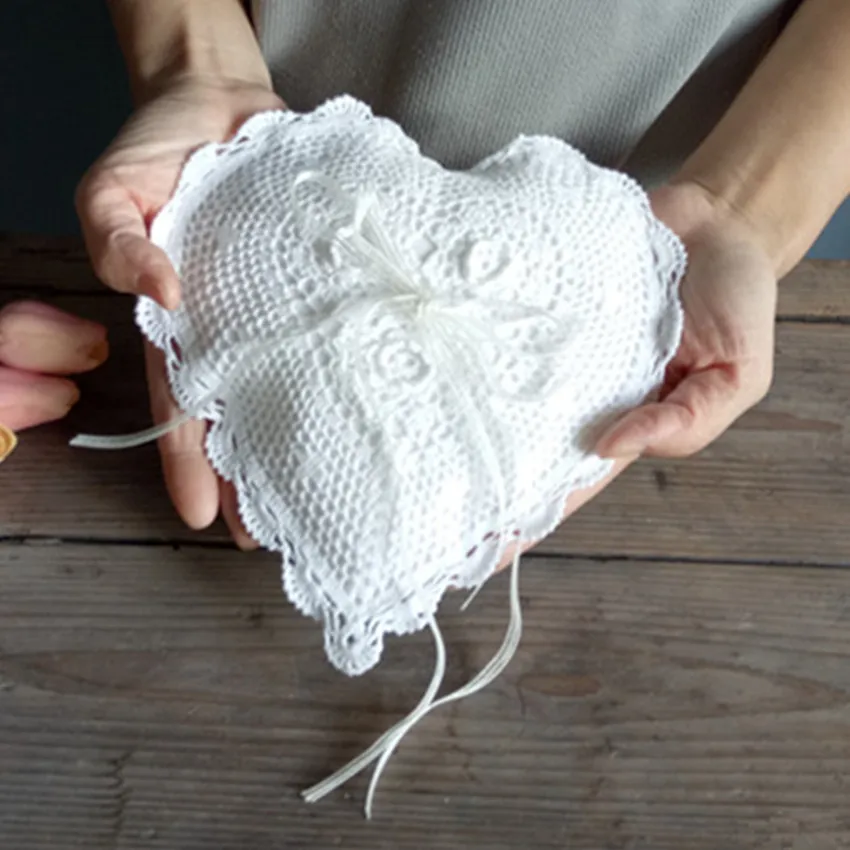 Ring Bearer Pillows With Heart Pattern Artanis Wedding Lace