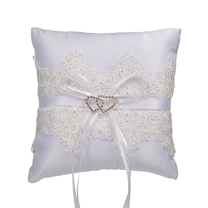 Wedding Ring Pillow Cushion Bridal Crystal Lace Ribbon Bowknot Decorated Ring Bearer Pillow Amazon In Toys Games