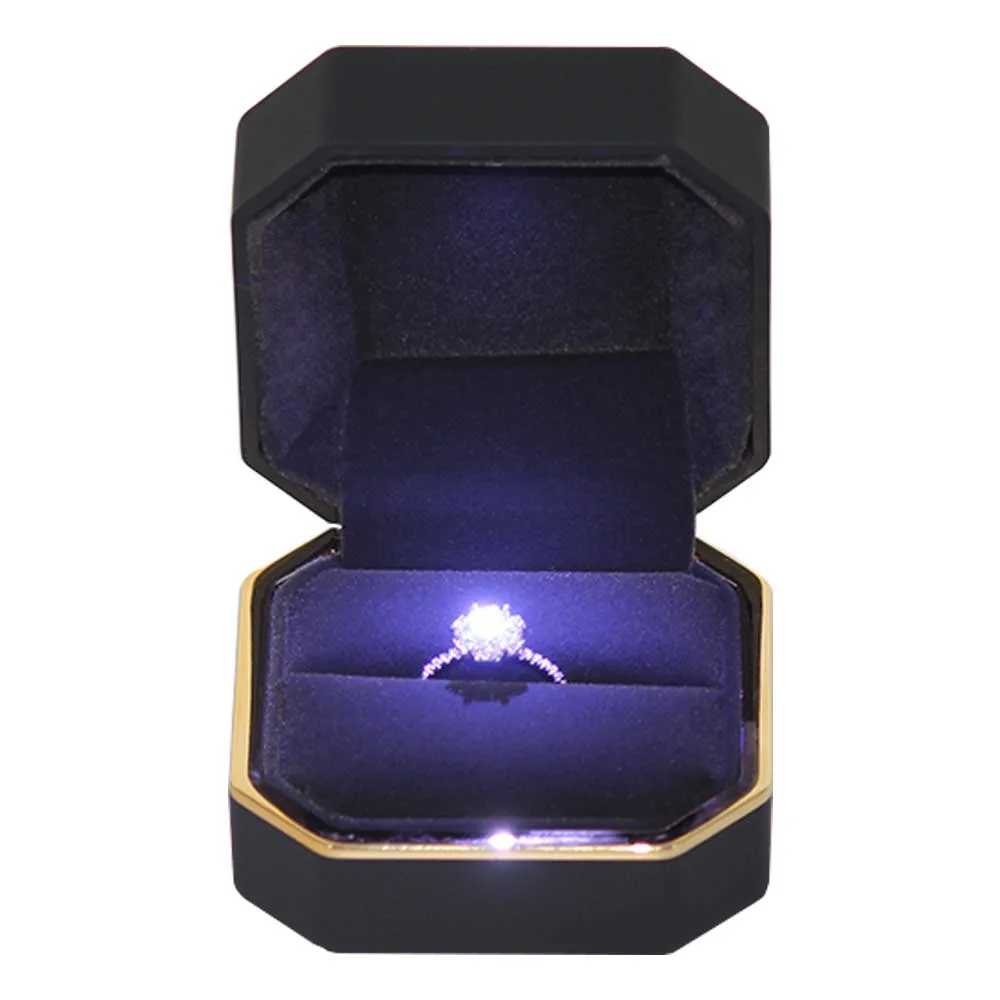 Lianggui Creative Octagon Shape Ring Box Jewelry Display Gift Box With Led Light For Proposal Engagement