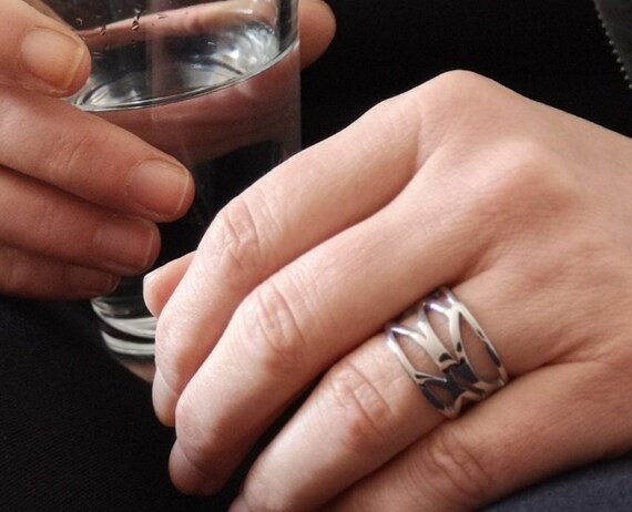 Ring Stainless Steel Finger Ring Cuts Punching Pattern Etsy