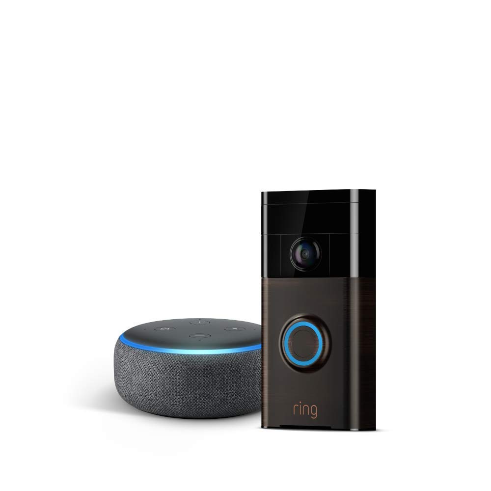 Amazon Com Ring Wi Fi Enabled Video Doorbell In Venetian Bronze With Echo Dot 3rd Gen Charcoal Gray Amazon Devices