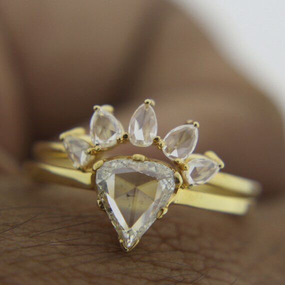 Diamond Engagement Ring Set Rose Cut Diamond Rings Pear Etsy