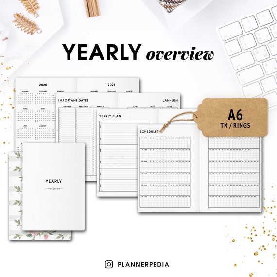 A6 Inserts Yearly Planner 2020 Yearly Overview Printable Etsy