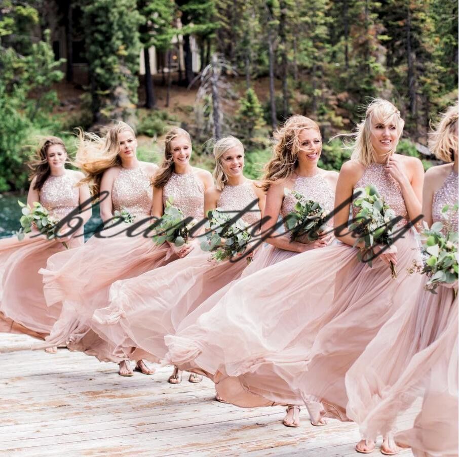 2019 Bridesmaid Dresses Sequins Chiffon Maid Of Honor Gowns Formal Halter Sheer Neck Backless Wedding Guest Dress A Line Middle East Bridesmaid Dresses For Teens Bridesmaid Dresses Gold From Beautyday 61 51 Dhgate Com