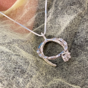 Silver plated pendant and chain. A necklace to hold your rings close to your heart. Its a great length easy to use and my ring is secure.