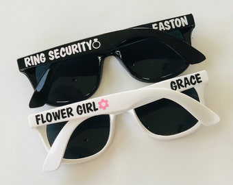 Better yet ring bearer presents can act as props during the event like a tiny briefcase to hold the wedding bands a badge that signifies their role in the ceremony or even something to keep them busy during the reception. Pair the sunglasses with this adorable pin and you get yourself a proper ring security guard. Your ring bearer has a very serious job and you want to make sure he feels appreciated for fulfilling his duty of getting the rings safely down the aisle.