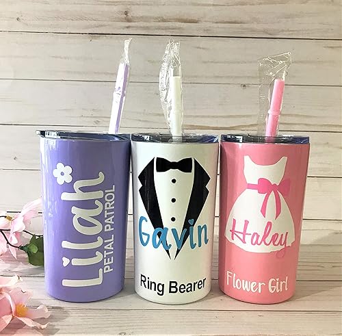 Amazon Com Flower Girl Gift Personalized Tumbler Ring Bearer Gift 12oz Stainless Steel Tumbler Straw And Lid Bridal Party Weddings Spring Break Bridesmaid Proposal Will You Be My Gifts Handmade