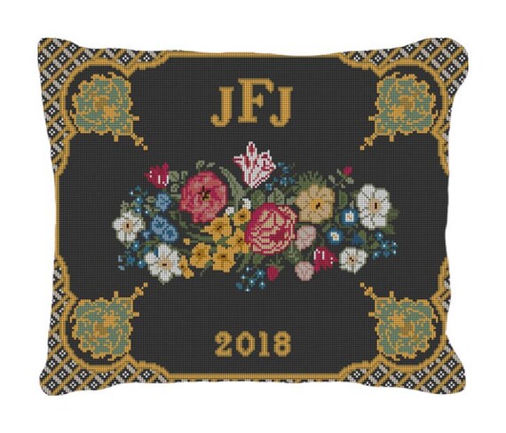 Needlepoint Ring Bearer Pillow Diy Canvas Classic Wedding Etsy
