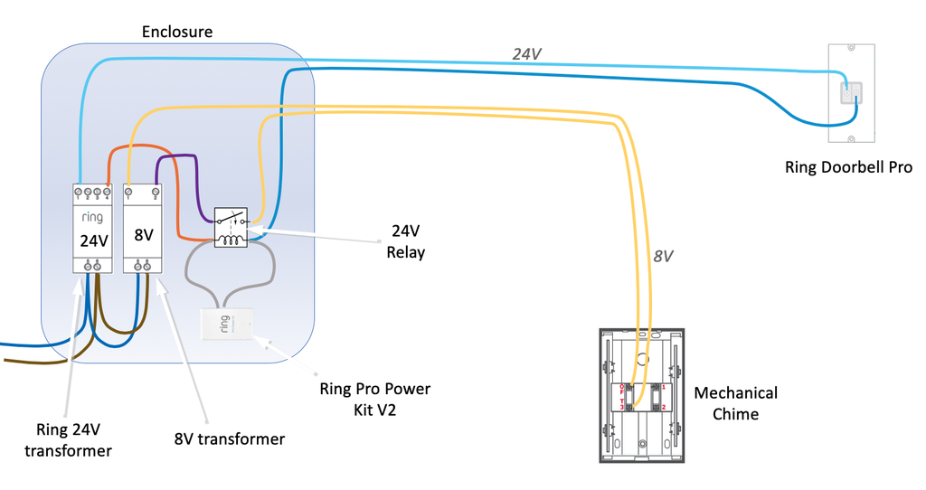 Secure pro power kit. Wiring of ring video doorbell pro with existing chime in uk byron 776 hello all i live in the uk and purchased a ring doorbell pro so i could use my existing wired door chime a byron 776 very common model with mechanical chime which has its own 8v transformer. Wiring diagrams for ring video doorbell 2 setup if youre in the process of setting up multiple ring video doorbell 2 units internal doorbells and transformers the following wiring diagrams may help.