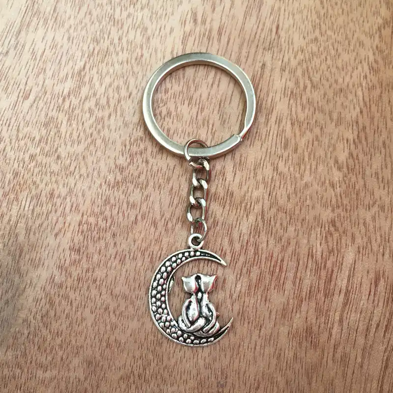 New Fashion Keychain 20 26mm Moon Cat Pendants Diy Men Jewelry Car Key Chain Ring Holder Souvenir For Gift Aliexpress