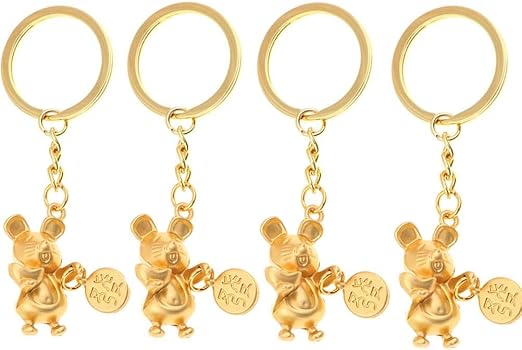 Amazon Com Tablere 4 Pieces 2020 Rat Year Zodiac Rat Keychain Pendants New Year Car Key Chain Ring Holder Gold Home Kitchen