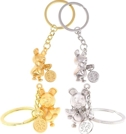 Amazon Com Eshylala 4 Pieces Chinese Zodiac Rat Year Keychain 2020 Rat Year Pendants Car Key Chain Ring Holder Gold Silver Home Kitchen