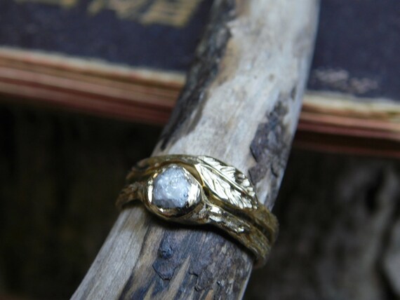 14k Cast Gold Rough Diamond Engagement Ring Weeping Willow Raw Etsy